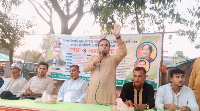 সারাদেশে বৈষম‌্য বিরোধী ছাত্র-জনতার আন্দোলনে শাহাদাত বরণকারীদের আত্মার মাগফিরাত ও আহতদের সুস্থ্যতা কামনায় দোয়া এবং আলোচনা সভার আযোজন করেছে নাইক্ষ‌্যংছড়ির ঘুমধুম ইউপি’র ৬ নং ওয়ার্ড বিএনপি। শুক্রবার (১৮ অক্টোবর)